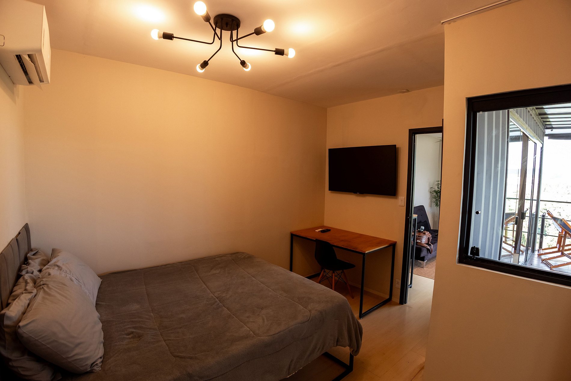 Localizado no Roteiro do Vinho, o Villa Container fica no topo da montanha mais alta da região, com vista incrível e total privacidade. O espaço foi pensado para proporcionar descanso, conforto e conexão com a natureza. A acomodação é moderna e aconchegante, com lareira e deck coberto privativo. À noite, o céu estrelado torna a experiência ainda mais especial e, pela manhã, é possível observar o nascer do sol em meio à mata nativa. Ideal para casais.
